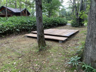 デッキサイトです(3.6m×3.6m)。デッキの前側にもテント張れます。ペット同伴可普通車2台は駐車できるスペースがあります。